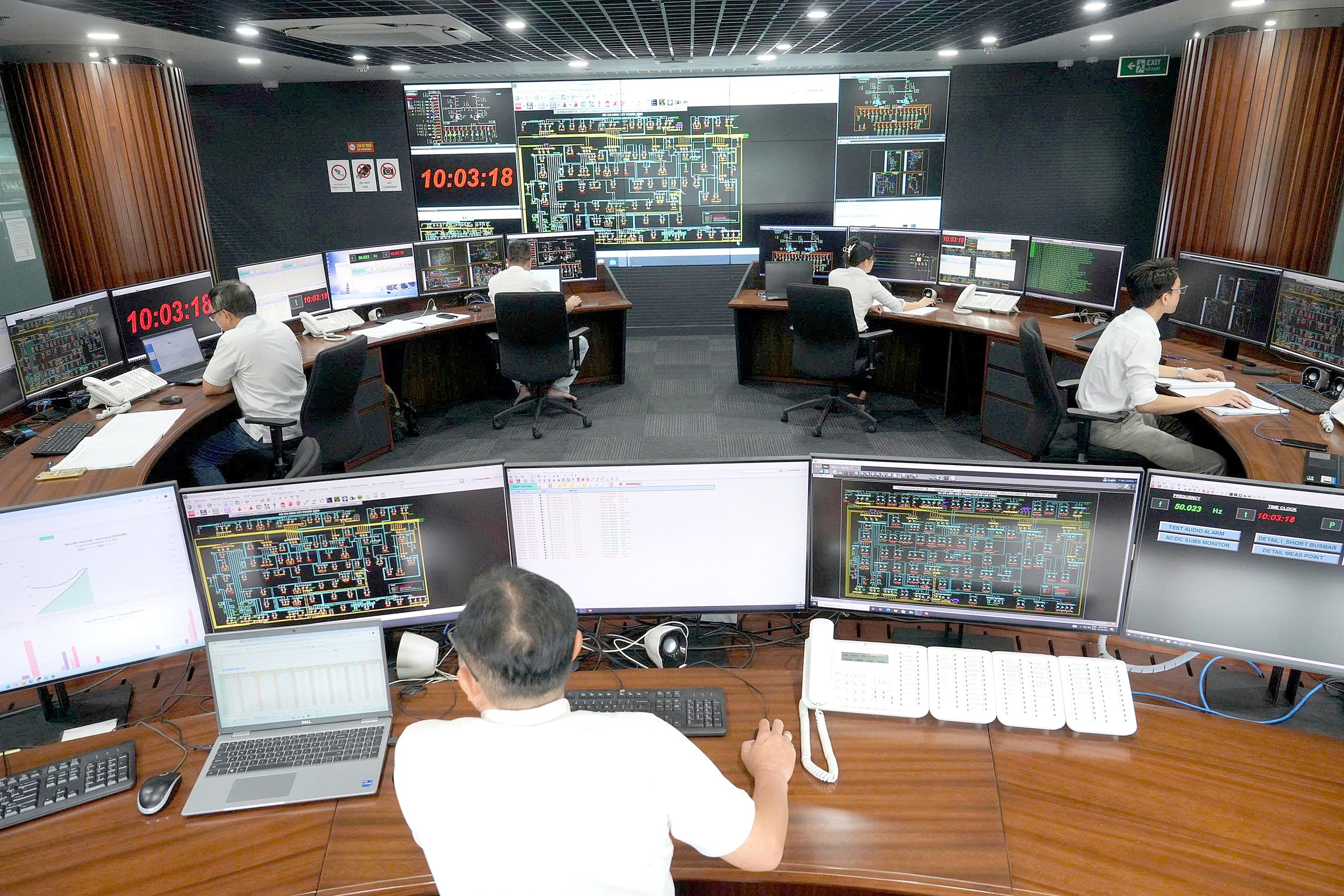 Nhân viên làm việc tại Trung tâm Điều độ hệ thống điện (chi nhánh 2 Điện lực Tân Bình) 117 Phổ Quang, TP.HCM - Ảnh: HỮU HẠNH